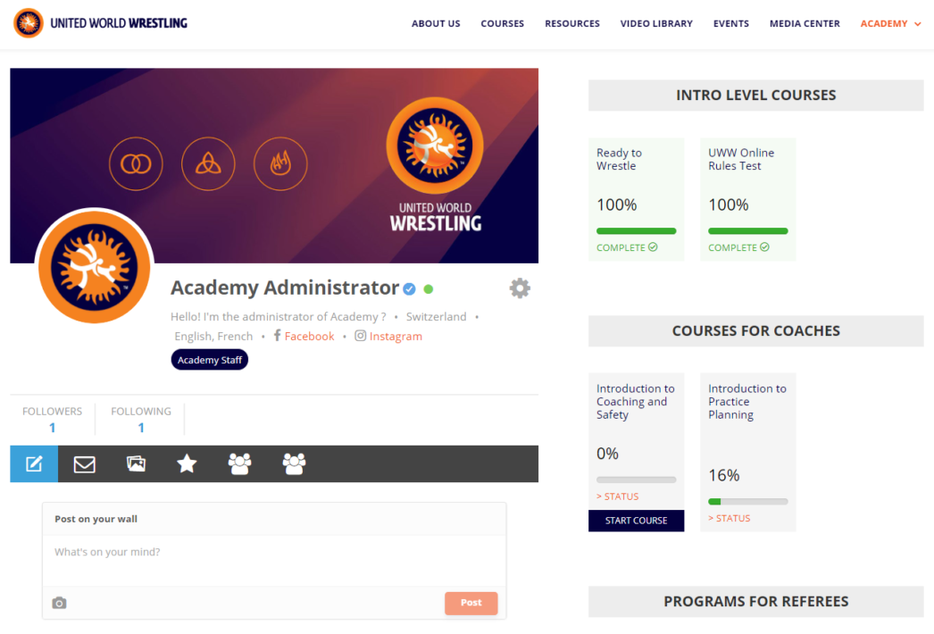 Concernant la plateforme d’apprentissage, nous avons créé un media center, une video library, ainsi que des profils utilisateurs publiques pour permettre aux utilisateurs de collaborer : la United World Wrestling Academy est un vrai support d’information, de formation, et de collaboration !
